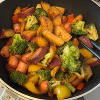 カレー粉のみで旨味を引き出すので、にんにくの香りやウインナーの油をしっかり出して風味を引き出すとコクのある一品に仕上がります。そのため、にんにくは冷たいフライパンに油と一緒に加えてじっくりと香りを出すように仕上げてくださいね。お好みのお野菜でつくれます。