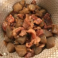 - 6 別の鍋に煮汁の材料を入れ中火で熱し、煮立ったら2と5を入れ、30分程煮込みます。