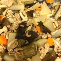 - 5 大根が柔らかくなったら3を戻し入れ、(B)を加えて混ぜながら強火で水分を飛ばします。