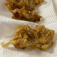 揚げ時間、1分では パリパリにならなかったので 200℃に上げ、3分ほど揚げました。