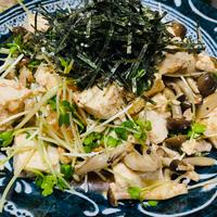 - 2 しめじは手でほぐし、耐熱ボウルに入れ、ふんわりとラップをかけ、しんなりとするまで500Wの電子レンジで1分加熱し粗熱を取ります。