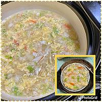 - 3 鍋に水、(A)を入れて中火で沸かし、1、カニを入れてごはんが柔らかくなるまで5分程弱火で煮ます。