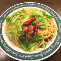 レシピに加えて、春の食材蛍イカと春キャベツを加えました。なかなか美味しくできました。パスタは湯からあげるとボソボソになるので茹で汁を加えました。春らしい一皿になりました😁