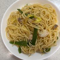 手早く作れました。アンチョビの他に、冷凍シーフードと、キャベツとピーマンを加えました。