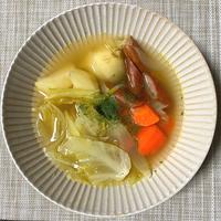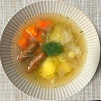 キャベツ、玉ねぎ、にんじん、じゃがいも、ウインナー、ハム。弱火でゆっくり煮込んだのもあり、野菜の甘みも出て美味しかったです。黒こしょう多めで味を整えます。冷蔵庫の半端な野菜を一気に消費できます。