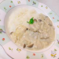 鶏肉を使ってお手軽に、ストロガノフはいかがですか?きのこをたっぷり入れ、旨味たっぷりの一品に仕上がりました。今回はごはんと合わせましたが、バケットや、バターライスと一緒にお召し上がりいただいてもとっても美味しいですよ。ぜひ作ってみてくださいね。