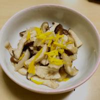 エリンギ、シメジ、キノコの旨味がしっかり出て、すごく美味しくなりました。大根おろしでさっぱり。味付け最高!柚子胡椒をつかったので、ついでにゆずの皮散らしてみました。ゆずの香りが広がりました。