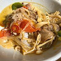 豚バラ肉は豚肩ロースや豚こま切れ肉でも代用できます。 えのきはしめじやしいたけなど他のキノコでもおいしく召し上がることができます。 鷹の爪輪切りの量はお好みで調整してください。 春雨は緑豆はるさめを使用してください。 アサリの塩分によって調味料の量はお好みで調整してください。