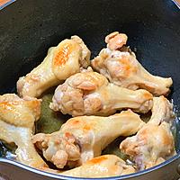 - 1 鍋にサラダ油を入れ中火で熱し、鶏手羽元を入れ炒めます。