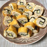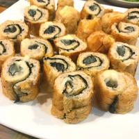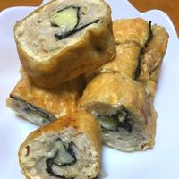 油揚げに鶏ひき肉を乗せて焼いてみました。のりがクルクルしていてとても可愛いですよ。お子さまにも喜ばれますし、お弁当にもおすすめです。お酒のおつまみにも合います。とても簡単に作れますので是非一度お試しくださいね。