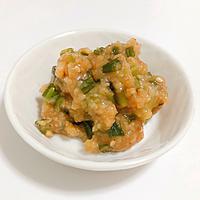 - 1 青ねぎは根元を切り落とし、みじん切りにします。
