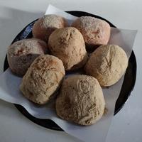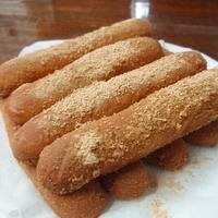 きな粉をまぶす際は、ロールパンがまだ揚げたてで熱いうちに行わないと、綺麗に付きませんのでご注意下さい。