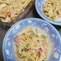 千切りキャベツはレタスでも代用できます。ロースハムの代わりにツナ水煮缶や、ツナ油漬けでもおいしくお作りいただけます。