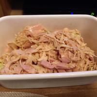 後で水っぽくなるのが嫌だったので、キャベツ200gをレンチンして水気を絞って作りました。