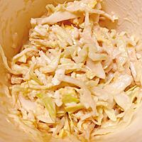 - 2 ボウルに(A)を入れて混ぜ合わせ、キャベツ、1、ゆで卵を加え、ゆで卵を崩しながら混ぜ合わせます。