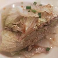 白菜と豚ひき肉の重ね蒸しのご紹介です。豚ひき肉に玉ねぎを混ぜこみ、白菜と重ねて、電子レンジで加熱して仕上げました。電子レンジで調理できますので、お手軽にお作りいただけますよ。ぜひお試しくださいね。