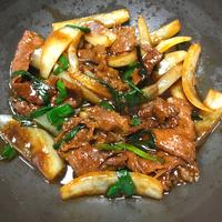 - 4 牛ホルモンに焼き色がつき、玉ねぎがしんなりしてきたら、2、タレの材料を入れ、中火のまま2分ほど炒めます。