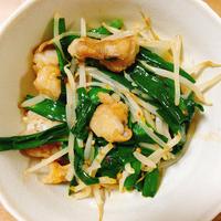 - 3 中火で熱したフライパンに、サラダ油をひき、1、牛ホルモンを3分ほど炒めます。