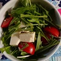 水菜とミニトマトが海苔のソースに良くあってとても美味しかったです!豆腐も入れて見ました!簡単に出来てよかったです!