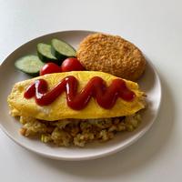 - 6 器に4を盛り、5をのせ、ケチャップをかけて完成です。
