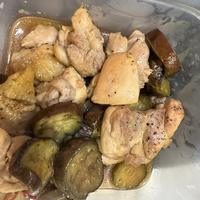 - 4 鶏肉が色付いてきたら、1のナスを入れてさらに炒めます。