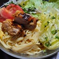 生野菜サラダと鶏モモの照り焼きを載せた麺に掛けて食べました(*‘ω‘ *)