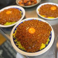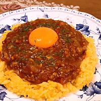 卵黄と一緒に食べるキーマカレーはとても美味しいです‼️