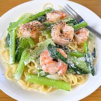 エビと小松菜のクリームスパゲティ レシピ・作り方