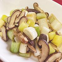 - 1 長ねぎは3cm幅に切ります。しいたけは薄切りにします。