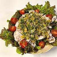 辛味が効いたよだれ鶏風のタレでいただく、豚しゃぶのご紹介です。たっぷりねぎの旨味ダレが豚肉にしっかりと絡み、とてもおいしくいただけます。ごはんのおかずにはもちろん、お酒のおつまみにもぴったりです。ぜひお試しくださいね。