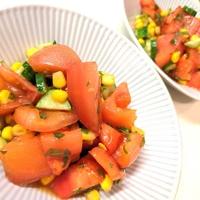 「トウモロコシとミニトマトのさっぱりマリネ」の作り方を簡単で分かりやすいレシピ動画で紹介しています。