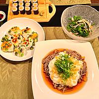 蕎麦を茹でる湯を沸かしてる間に山芋おろしをして、小ネギを切るだけなので、とても短時間で作れます❗️
