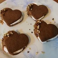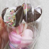 ハートのクッキーポップスのご紹介です。サクサクのクッキーにマシュマロを挟み、まるでロリポップキャンディのような見た目のとてもかわいらしい一品ですよ。トッピングはお好みでアレンジも楽しめます。ぜひお試しくださいね。