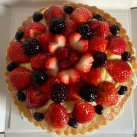 サクサク&しっとりの食感が魅力的なタルト生地に、手作りカスタードと旬のフルーツを贅沢にトッピング。いちごはもちろん、ブルーベリーや黄桃など好みのフルーツでアレンジ可能です。初心者でも簡単に作れると好評で、お店のような仕上がりに大満足。生地作りのポイントは冷蔵庫でしっかり休ませること。バースデーケーキやプレゼントにも喜ばれる一品です。