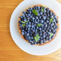 - 9 カスタードクリームを7に流し入れ、平らにならし、8とブルーベリーを盛り付けて完成です。