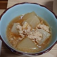 大根は100ccの水に鶏ガラと醤油を半量ずつ入れ、レンチンすると味が染みて美味しいです。豚ひき肉にすると脂っこくなりました。