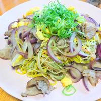 豚バラ肉と紫玉ねぎのそうめんチャンプルー風 レシピ・作り方
