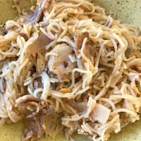 二人分まとめて作りました。調味料は×2では味が薄くて足して、玉葱と豚こまは×2では多過ぎて3割減で!素麺は白が半量しか無く、残りの半量は三色の色付き!お好みで胡椒や鰹節を♪