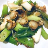 簡単で美味しい❗ 刺身用のホタテを使ったので炒めすぎないようにサッと火を通す程度にしました。 その分アスパラはレンジで1分軽く下茹でして調整👌 ネギにタレが絡んで美味❗