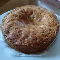 - 5 クッキングシートを敷いた型に4を流し込み、180℃のオーブンでふっくらと焼き色がつくまで40分程焼きます。