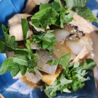 - 5 2を入れて中火のまま炒め、ナスがしんなりしたら3を入れてさらに炒めます。全体に味がなじんだら弱火にし、水溶き片栗粉を加えてかき混ぜ、とろみがついたら火から下ろします。
