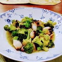 タコとブロッコリーのアヒージョのご紹介です。タコとブロッコリーをたっぷりのニンニクとオリーブオイルで煮込みました。ニンニクが香りとてもおいしいですよ。