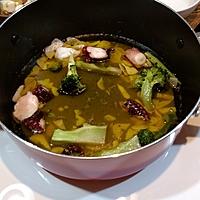 最初に鷹の爪1ついれました。シーフードミックス、ブロッコリー、ジャガイモ、舞茸で。子供に100点と言われました( *´꒳`* )
