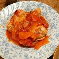 チキンとトマトのカポナータの紹介です。鶏手羽元をトマトで煮て、砂糖と白ワインビネガーを加え甘酸っぱい味付けに仕上げました。タイムやローズマリーなどのハーブを加え香りをつけると、より本格的になります。是非お試し下さい。