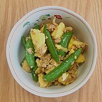- 4 中火のまま炒め合わせ、全体に卵が絡みスナップえんどうに火が通ったら火から下ろします。
