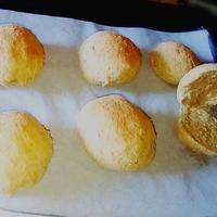 - 5 ガスを抜き、丸め直してクッキングシートを敷いた天板に置きます。ラップ、濡れた布巾をかぶせてオーブンの発酵機能を使い40℃で40分発酵させます。(二次発酵)