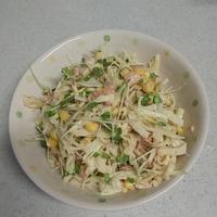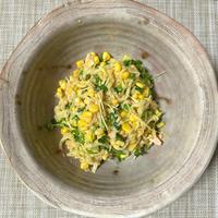 - 3 別のボウルに(A)を入れて混ぜ合わせ、1、2、ツナ水煮、コーンの水煮を加え全体に味がなじむように和えます。