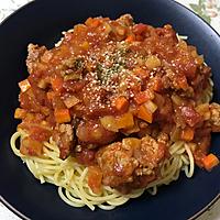 ゴロゴロ豚ひき肉で根菜ミートソースパスタ レシピ・作り方