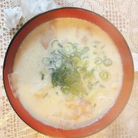 写真は、無調整豆乳→調整豆乳、昆布茶→和風顆粒だし少々、あげ→冷蔵庫に無かったので無し。