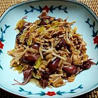 - 3 フライパンにごま油と1を入れ、中火にかけます。ニンニクの香りが立ったら2とホタルイカを入れて炒めます。軽く混ざったら(A)を入れて軽く炒めます。味が馴染んだら器に盛って完成です。